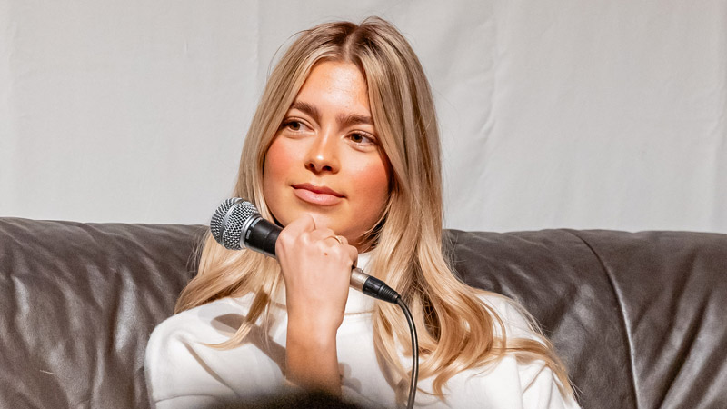 Kunstturnerin Sarah Voss nahm zuerst auf der Bühnencouch Platz. Nachdem sie bereits 2021 bei den Olympischen Spielen in Tokio dabei war, hat sie nun auch das Ticket für die Spiele im kommenden Jahr in Paris in der Tasche. Die Dormagener Sportlerin der Jahre 2019, 2021 und 2022 wohnt in Rheinfeld („mein Rückzugsort“), und ist mehrfache Deutsche Meisterin. Das Lieblingsgerät der Mehrkämpferin ist der nur 10 cm breite Schwebebalken. Schon als Dreijährige begeisterte sie sich für das Turnen, heute gehört sie in ihrem Sport - „wenn ich gut drauf bin“ – zu den besten Acht der Welt. Voraussetzung ist eiserne Disziplin: Durchschnittlich trainiert die ehemalige NGK-Schülerin neben ihrem BWL-Fernstudium etwa 30 Stunden in 10 Einheiten pro Woche. Trotzdem bleibt Zeit, sich als Botschafterin der Initiative „Kinder stark machen“ zu engagieren. Die Aktivensprecherin im Deutschen Turnerbund erregte viel Aufsehen für ihr Engagement gegen die Sexualisierung von Frauen und Mädchen im Sport und startete als erste deutsche Turnerin mit einem Ganzkörpertrikot in einen Wettkampf.
