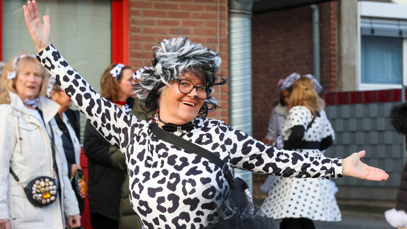 Wenn plötzlich rund 100 „Dalmatiner“ an der Straße stehen, reibt sich mancher Autofahrer verwundert die Augen. Doch die Szene ist schnell erklärt: Inspiriert vom Filmklassiker „101 Dalmatiner“ trafen sich Närrinnen aus Dormagen und der Umgebung am Nachmittag vor der Feuerwache in Nievenheim, um gemeinsam in zwei Bussen zur Kölner Flora zu starten. Dort steigt die Mädchensitzung der Karnevalsgesellschaft „Fidele Zunftbrüder“ – und die punktgefleckten Gäste dürften nicht die einzigen Hingucker des Abends bleiben.Auf dem Programm stehen unter anderem das Kölner Dreigestirn, die StattGarde Colonia Ahoj, die Tanzgruppe Zunft-Müüs sowie Sänger Torben Klein, die Bands Auerbach und Domstürmer. In die Bütt steigen Marc Metzger und Martin Schopps – beste Voraussetzungen für einen ausgelassenen Abend zum Genießen und Mitfeiern.