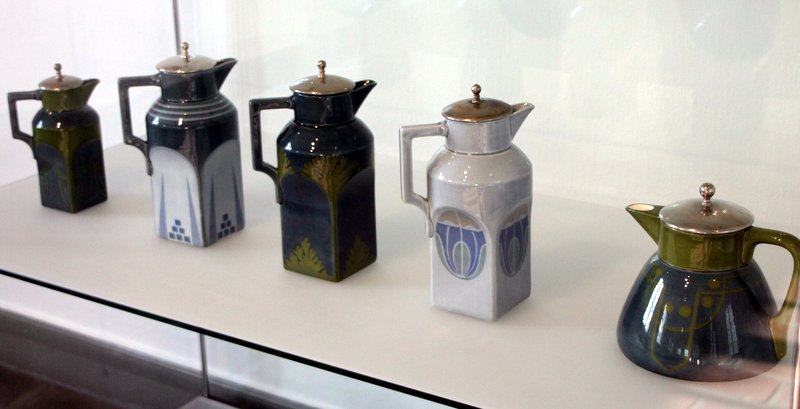 Christian Neureuther, der 1882 als Schmelzmalerlehrling in der Wächtersbacher Steingutfabrik im hessischen Brachttal-Schlierbach begann, initiierte 1901 die Gründung einer kunstkeramischen Abteilung. Zwei Jahre später erfolgte die Eingliederung in die Fabrik. Ab diesem Zeitpunkt beginnen geometrische Ornamente, florale Motive oder auch beides in Kombination das Dekor von Vasen, Tellern, Kannen und Gefäßen zu bestimmen. Besonders reizvoll sind dabei die Farbvariationen. Sie reichen von subtil abgestimmten Nuancen verschiedener Grau- und Pastellfarben bis zum effektvollen Kontrast starker, zum Teil glühender Farben. Ein Highlight der Ausstellung sind sicher die figürlichen Arbeiten, darunter die sogenannten Modedamen nach Entwürfen von Annie Offterdinger.